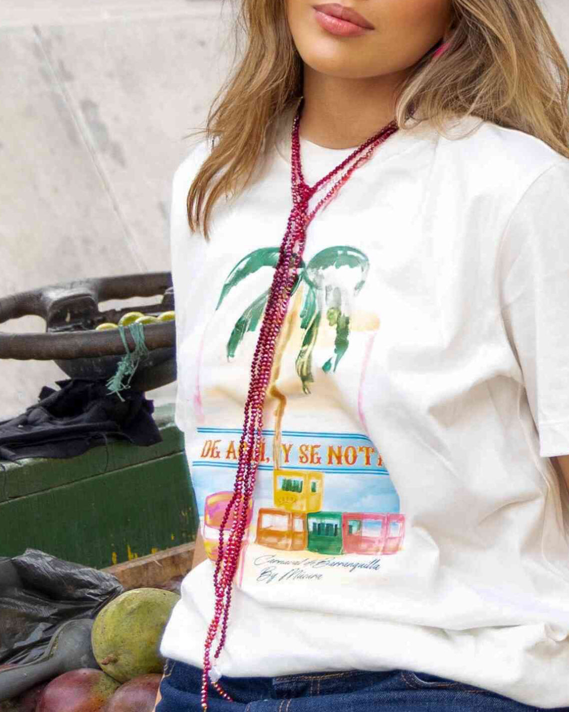 Al ritmo del sol una t- Shirt que celebra la frescura, el color y la energía de los días vibrantes. Al ritmo del sol combina una silueta relajada con un diseño gráfico lleno de vida, evocando la esencia caribeña, verano y movimiento. Su tono claro aporta luz y versatilidad, convirtiéndola en una prenda esencial para looks casuales con actitud.