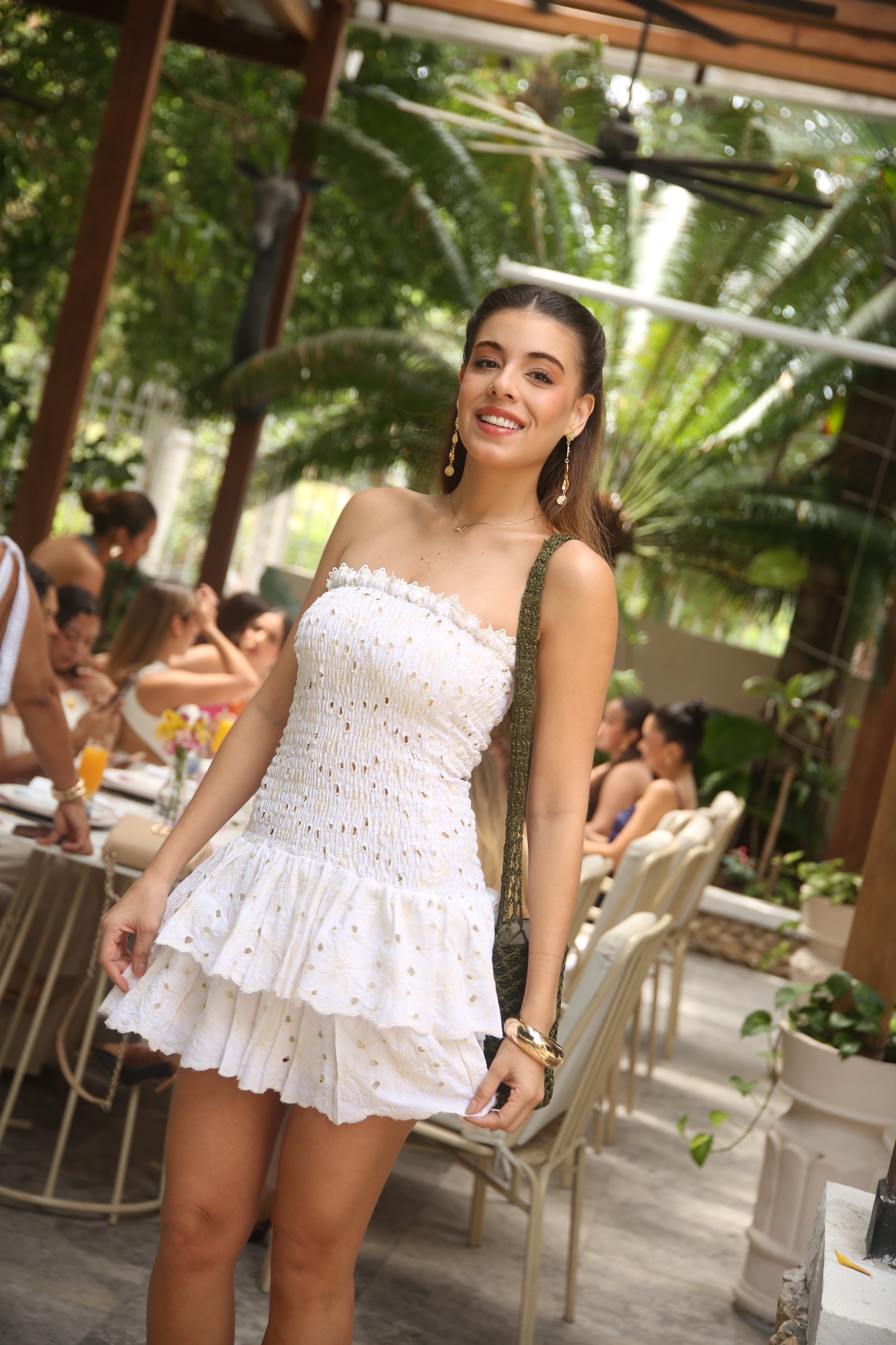 Flor de Azahar Blanco, vestido bordado con delicados detalles que evocan frescura y romanticismo. Su silueta ajustada con nido de abeja resalta la figura, mientras sus volantes aportan movimiento y sutileza. La elección ideal para un día soleado con encanto tropical.